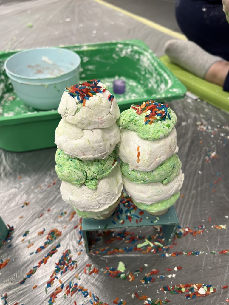 Połączenie mąki ziemniaczanej i bezbarwnego płynu do naczyń stworzyło masę, która była jednocześnie miękka, śliska i lekko puszysta. Idealna do ugniatania, mieszania i formowania – bez pośpiechu i bez oczekiwań co do efektu.