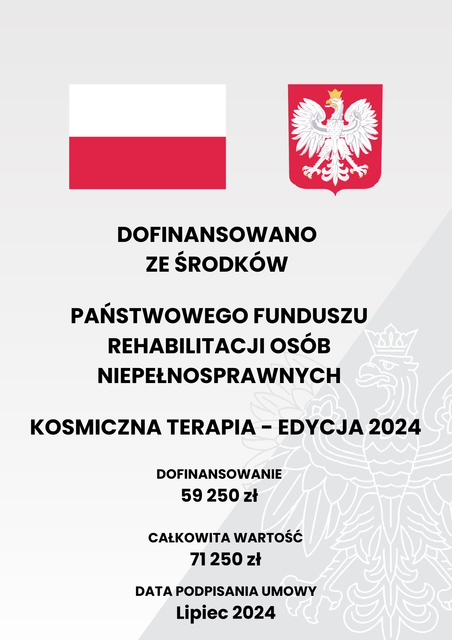 Zapraszamy do obejrzenia prezentacji z zajęć rehabilitacyjnych w kombinezonach Dunag! Dowiedz się, jak ten innowacyjny system wspiera pacjentów z problemami neurologicznymi i ruchowymi, pomagając w poprawie postawy, koordynacji i samodzielności. Zadanie „Kosmiczna terapia – edycja 2024” dofinansowano ze środków PFRON PFRON – Państwowy Fundusz Rehabilitacji Osób Niepełnosprawnych, będących w dyspozycji Samorządu Województwa Podkarpackiego – Regionalnego Ośrodka Polityki Społecznej w Rzeszowie.