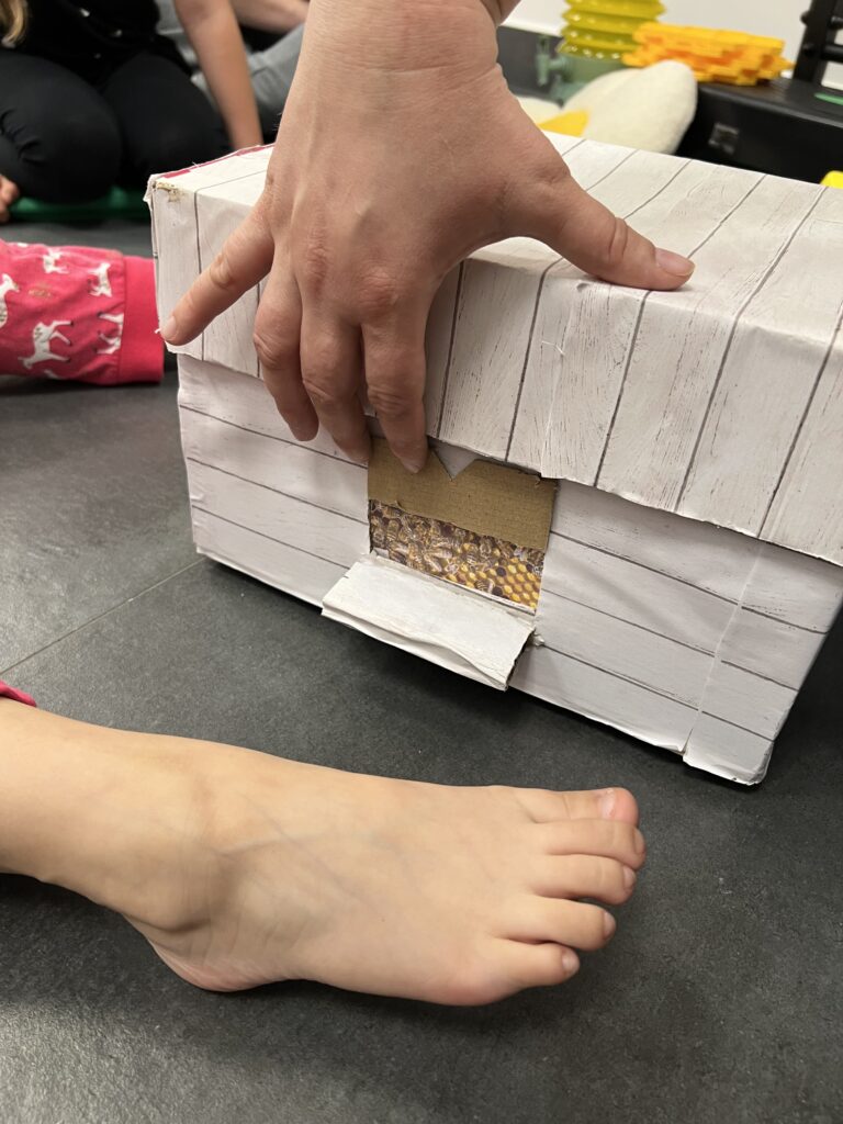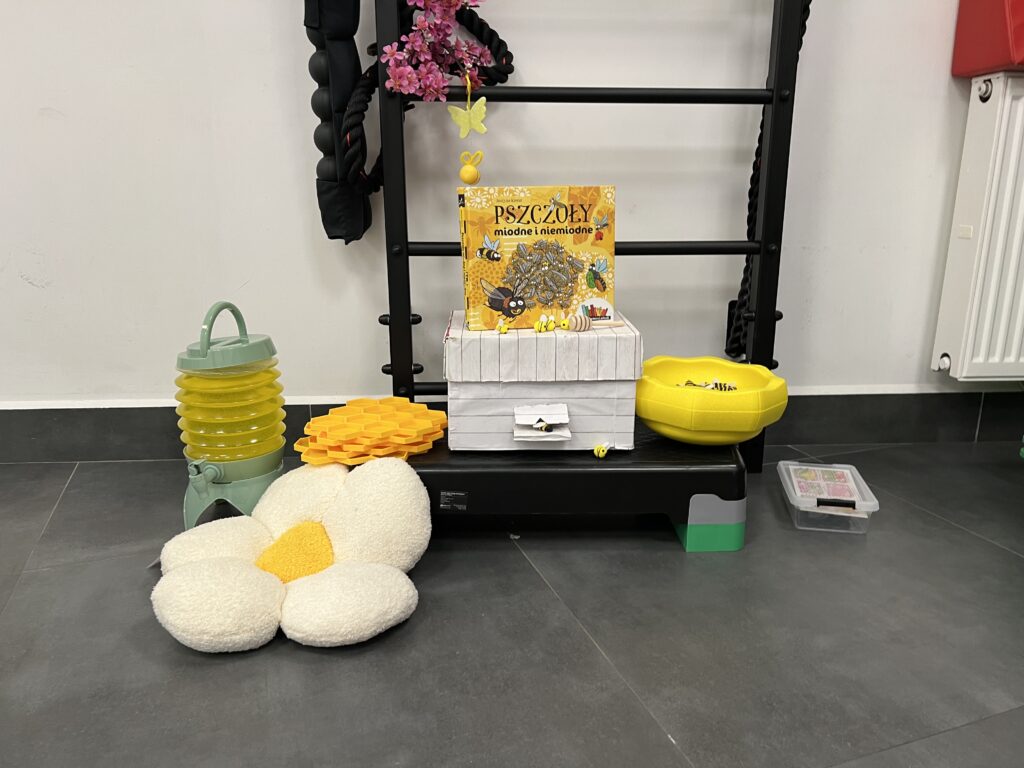 W masie ukryte były pszczoły, które dzieci wyławiały palcami lub łyżkami i umieszczały w przygotowanych „plastrach miodu”. Każdy ruch wymagał innej siły i tempa – dokładnie tak, jak w prawdziwej pracy pszczół.